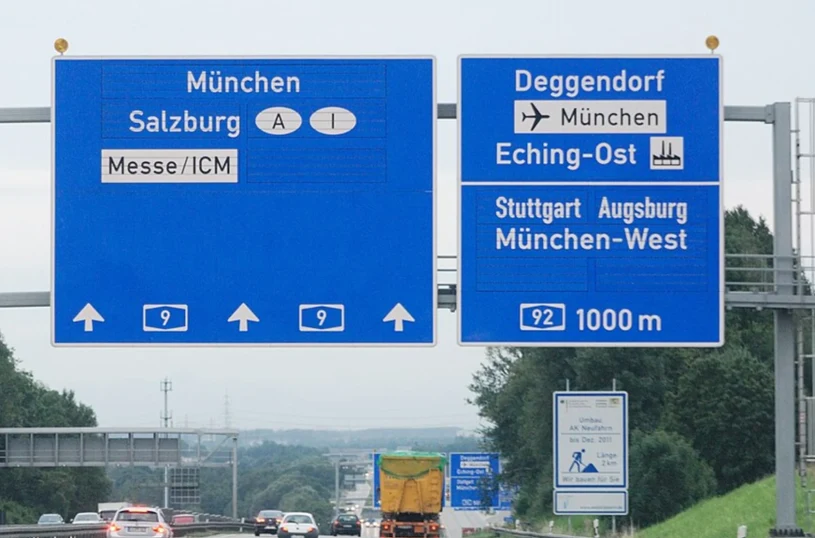 Na tablicach kierunkowych przy zjazdach z autostrad i dróg ekspresowych w Niemczech, zarówno tych z niebieskim, jak i zielonym tłem, pojawia się czasem pozioma kreska oddzielająca nazwy miejscowości. Większość kierowców traktuje ją jako element graficzny porządkujący treść znaku, ale w rzeczywistości jest ona częścią systemu informacyjnego i przekazuje kierowcom ważną informację.