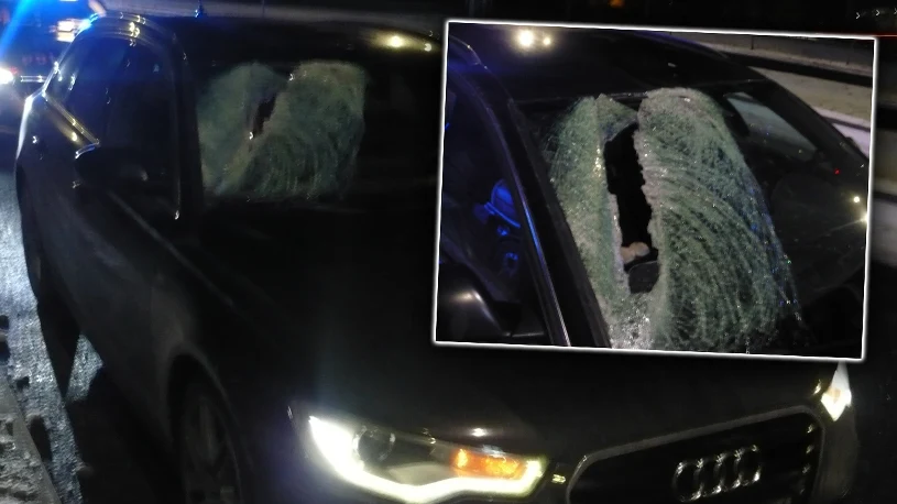 Bryła lodu wbiła się w szybę osobówki. Niebezpieczny incydent na S5