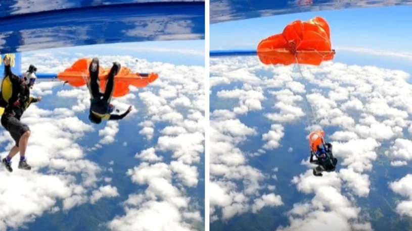 W trakcie skoku formacyjnego z wysokości 4600 metrów doszło do dramatycznego zdarzenia. Jeden ze spadochroniarzy, którego zapasowy spadochron otworzył się przez przypadek, zawisł na skrzydle samolotu. Dzięki użyciu noża hakowego i zachowaniu zimnej krwi udało mu się przeciąć linki i otworzyć główny spadochron. Skoczek odniósł tylko drobne obrażenia, a cała grupa zakończyła skok bez poważnych konsekwencji.
