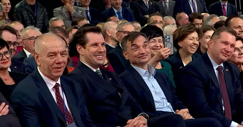 – Otóż dwie partie niedyskretne połączyły się z tą większą partią niedyskretną i zdecydowano się na nową nazwę, tę samą, która była przedtem – tymi słowami Jarosław Kaczyński skomentował połączenie się Platformy Obywatelskiej, Nowoczesnej i Inicjatywy Polska. Te słowa prezesa wywołały salwę śmiechu wśród publiczności.